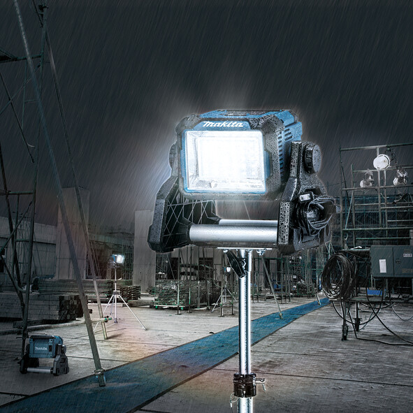 Maksimāli 3 000 lūmeni. Darbojas gan ar 18 V akumulatoriem, gan ar maiņstrāvu (kabelis komplektā). 3 spilgtuma līmeņi: Augsts / Vidējs / Zems. Atmiņas funkcija kontrolierīkam, kas saglabā spilgtuma iestatījumus izslēgšanas brīdī, ļauj izvairīties no spilgtuma atkārtotas regulēšanas ieslēgšanas laikā. Gaismas leņķa regulēšanas iespēja līdz 240ᵒ. Funkcija, kas brīdina par akumulatora izlādēšanos. Darbības laiks līdz 13 stundām. IP65 sertificēta putekļu un ūdens izturība (tikai līdzstrāva).