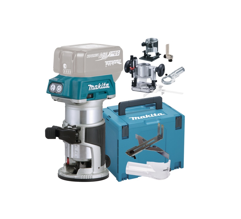 Akumulatora frēzes komplekts iepakots kopā ar piederumiem Makpac koferī. Liels jaudas līmenis, izturīga un precīza frēze. Alumīnija korpuss un pamatne padara ierīci precīzāku un izturīgāku. Regulējams apgriezienu skaits atbilstoši materiālam. Vienmērīga ieslēgšana. Ar dažādiem pamatnēm atbilst dažādām vajadzībām.
