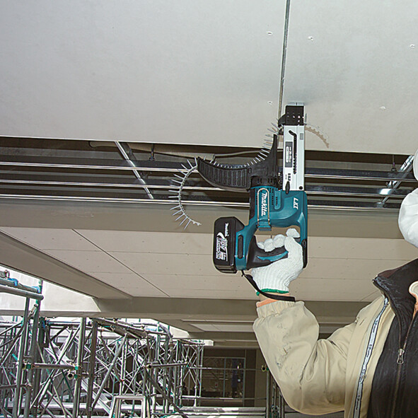 “Anti-tilt-device” – fiksē skrūvi, novērš skrūves novirzīšanos. Skrūvēm 25–55 mm. Lentu vadītājs novērš skrūvju lentes iestrēgšanu. Klusi strādājošs un precīzs dziļuma regulēšanas slēdzis. Rīks un akumulators ir aprīkoti ar aizsardzības sistēmu. Sistēma automātiski izslēdz rīka barošanas strāvu, lai pagarinātu akumulatora kalpošanas laiku. Virziena maiņa. Putekļu izturīga konstrukcija. Uzlabota, augstas izturības padeves ierīce.