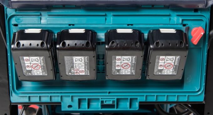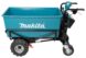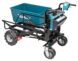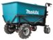 Makita akumulatora dārza ratiņi ir četrriteņu, priekšējā piedziņa darbināms instruments, kas paredzēts smagu pārvadājumu darbiem būvniecībā un ainavu veidošanā. Maksimālā slodzes kapacitāte uz līdzenas virsmas (0–3°) ir 300 kg, savukārt nogāzēs (3–12°) tā ir 180 kg. Locītais aizmugurējais tilts nodrošina labāku stabilitāti un vadāmību arī nelīdzenās vietās. Barošanai tiek izmantotas divas secīgi savienotas 18V LXT® akumulatoru baterijas, taču ierīcei ir četri akumulatoru ligzdas, kas ļauj pagarināt darba laiku. Akumulatoru pāru izvēles slēdzis ļauj lietotājam izvēlēties, kurus akumulatorus izmantot, palielinot darba efektivitāti un elastību. Drošības un redzamības nodrošināšanai dārza ratiņi ir aprīkoti ar brīdinājuma signālu, kas informē apkārtējos par kustību. Divas LED priekšējās gaismas un sarkana LED aizmugurējā gaisma nodrošina redzamību arī tumšā vai vājā apgaismojumā. WetGuard/IPX4 ūdensizturība ļauj izmantot dārza ratiņus arī mitros apstākļos. Extreme Protection Technology (XPT) nodrošina labāku putekļu un mitruma aizsardzību, ļaujot darbarīku izmantot arī smagos darba apstākļos. Roktura augstumu var regulēt bez instrumentiem, pagriežot tikai divus pogas – augstums ir pielāgojams diapazonā no 740 mm līdz 980 mm, piemērots dažāda auguma lietotājiem. Konstanta ātruma kontrole nodrošina vienmērīgu kustības ātrumu arī slodzes apstākļos, padarot darbu plūstošāku un efektīvāku. Akumulatora aizsardzības sistēma novērš pārslogošanu, pārlādēšanu un pārkaršanu, pagarinot akumulatora un instrumenta kalpošanas laiku.