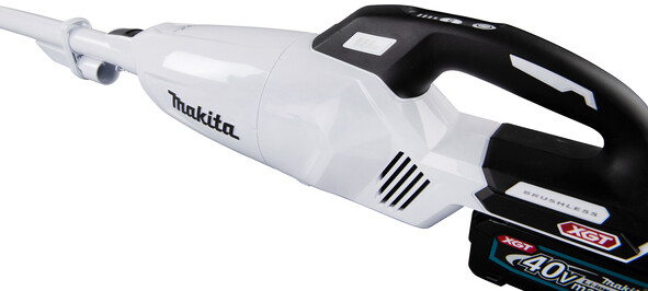 Spēcīgs bezsuku motors ar akumulatora putekļsūcēju, kas darbojas ar XGT® 40Vmax akumulatoru. Darbības laiks ar 40V 4,0Ah akumulatoru līdz 128 minūtēm. Četri dažādi iesūkšanas jaudas iestatījumi ar atmiņas funkciju, visjaudīgākais iesūkšanas spēks līdz 210 mbar. Iesūkšanas caurules bloķēšana novērš caurules nejaušu atvienošanu. LED gaisma atvieglo darbu tumšos stūros. Ierīcei nav atsevišķa putekļu maisiņa, putekļi un netīrumi tiek iesūkti 0,73 l tvertnē, kuru ir ļoti viegli iztukšot.