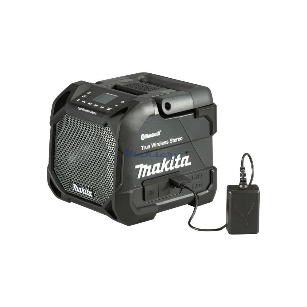AC/DC – skaļruni var izmantot ar komplektā esošo 220V adapteri vai Makita akumulatoriem. LCD ekrāns. Piemēroti akumulatori: CXT sērijas akumulatori 10,8/12V Max, LXT sērijas akumulatori 14,4/18 V. Nestrādā ar Makita G sērijas akumulatoriem!