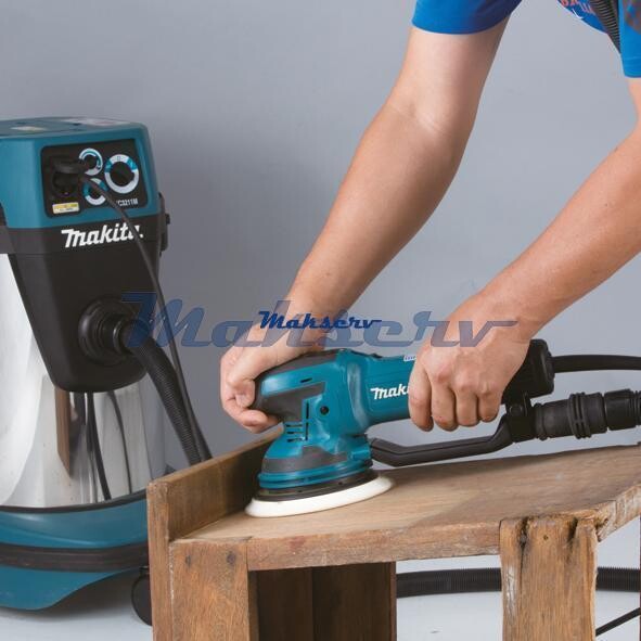 Regulējami apgriezieni atbilstoši materiālam. Efektīva putekļu novākšana caur apakšplāksnē esošajiem caurumiem. Roktura gumijas pārklājums nodrošina drošu satvērienu.