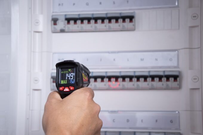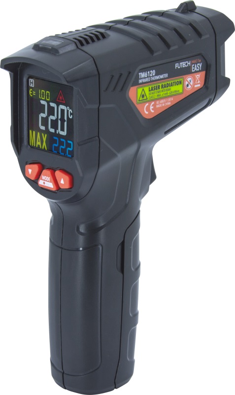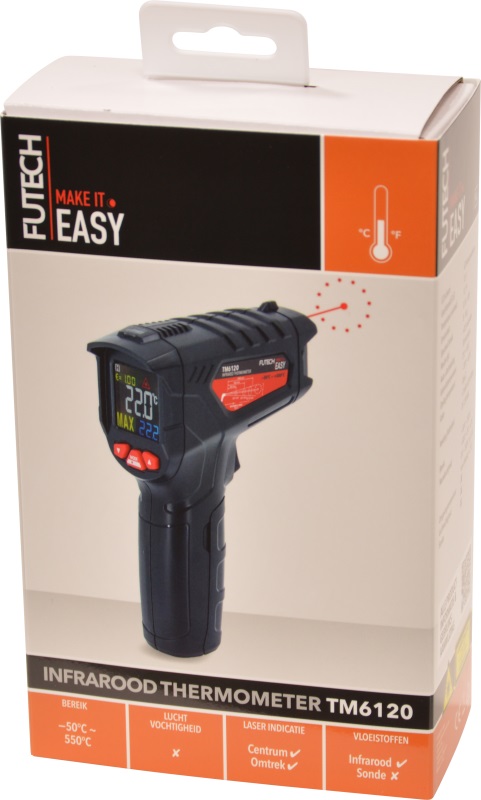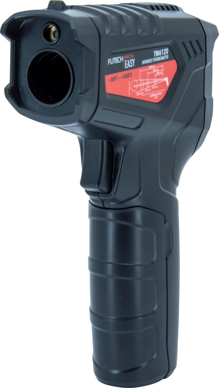 Infrasarkanais termometrs (bīstamu, kustīgu) virsmu temperatūras bezkontakta mērīšanai diapazonā no -50 °C līdz +550 °C, mērījumu precizitāte 1,5%. Lāzera stars norāda mērāmās zonas centru.