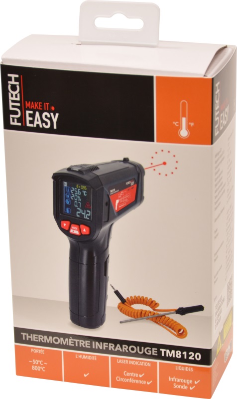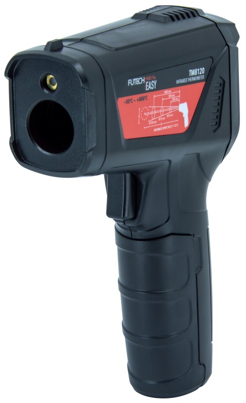 Infrasarkanais termometrs (bīstamu, kustīgu) virsmu temperatūras bezkontakta mērīšanai diapazonā no -50 °C līdz +800 °C, mērījumu precizitāte 1,5%. Lāzera stars norāda mērāmās zonas centru.