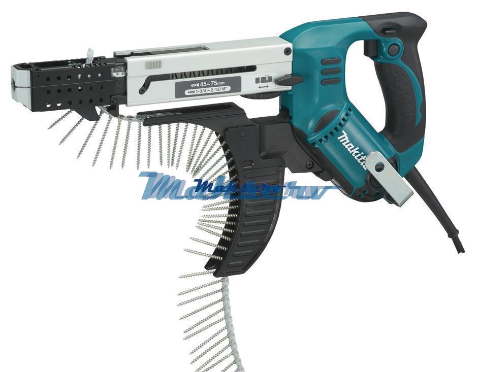 Izturīgs alumīnija padeves mehānisms. Vads nodrošina vienmērīgumu un precizitāti skrūvēšanas darbos. “Anti-tilt device” – nostiprina skrūvi, novērš skrūves noliekšanos. Bloķējamais slēdzis atvieglo skrūvēšanas darbus. Stipra alumīnija konstrukcijas padeves ierīce. Garām skrūvēm 45–75 mm. Padeves ierīcei ir skrūvju vadotne, kas novērš padeves noliekšanos. Klusa darbība un precīza dziļuma regulēšanas slēdzis. Lentes vadotne novērš skrūvju lentes iestrēgšanu. Virziena maiņa.