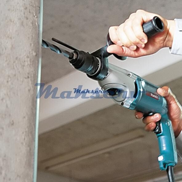Triecienurbjmašīna ar urbšanas un triecienurbšanas funkciju. LED darba vietas apgaismojums. Roktura iegriezums un metāla reduktora korpuss. Drošības sajūgs aptur urbi, ja rodas darba pretestība.