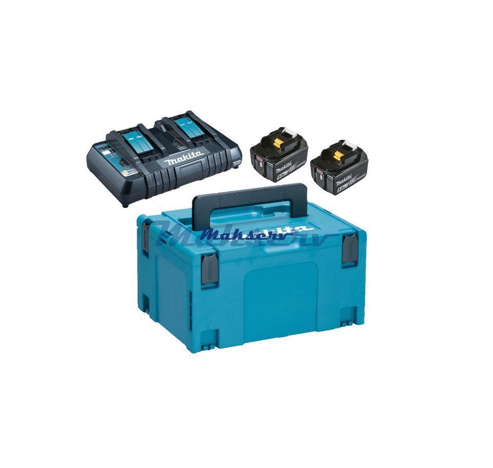 Komplekts 18V, 2XBL1850B (18V 5Ah baterijas), DC18RD (ātrā lādētāja 2 baterijām), MAKPAC koferis
