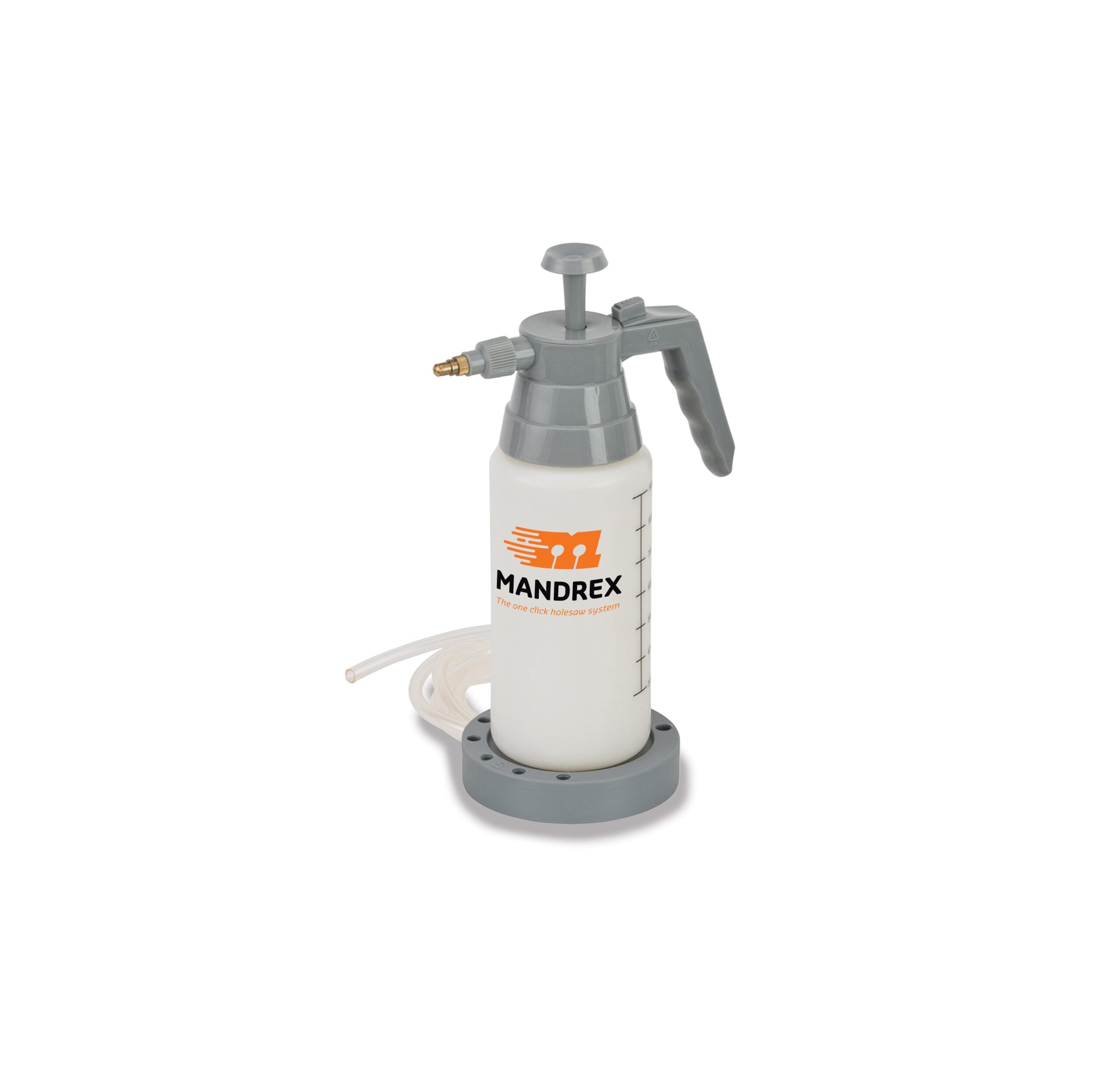 MandreX ūdens smidzinātājs ar spiedienu paredzēts keramisko flīžu un citu materiālu apstrādei ar dimanta caurumu zāģiem. Maksimālais tilpums – 0,9 l. Komplektā iekļauta 1,8 m ūdens šļūtene.