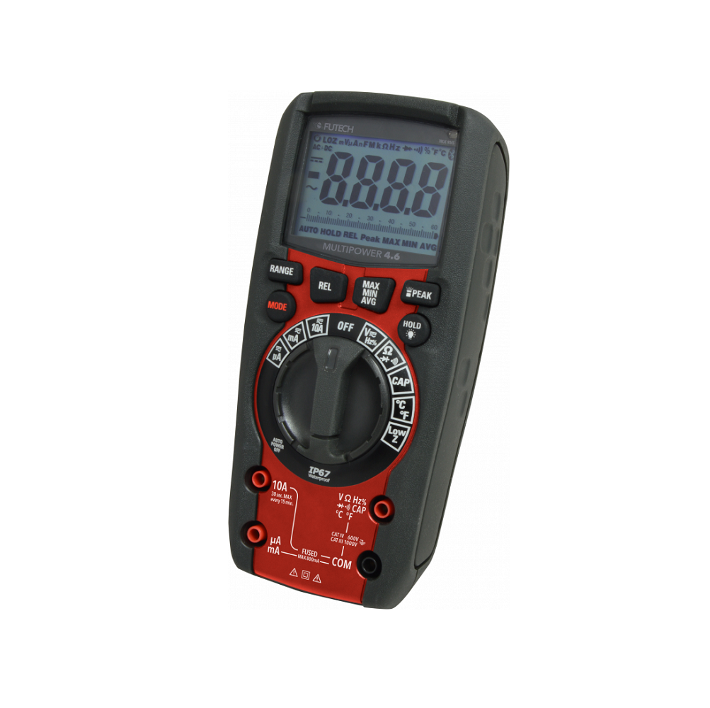 Izturīgs (IP 67), digitāls TRUE RMS multimetrs Cat IV-600V / CAT III-1000V visprecīzākai svarīgāko elektrisko vienību (V, A, omi, Hz, F) un temperatūras (°C/°F) mērīšanai. Tam ir iebūvēts kabatas lukturītis, liels ekrāns (6000 skaitījumi), Low Z režīms un automātiskās diapazona funkcija.