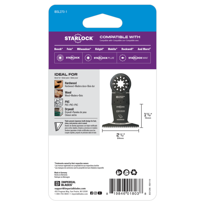 Ieteicamās pielietošanas jomas: Ciets koks, koks, PVC, ģipškartons. Japāņu zobs (HCS) ātrai, tīrai un precīzai koka griešanai. STARLOCK stiprinājums.