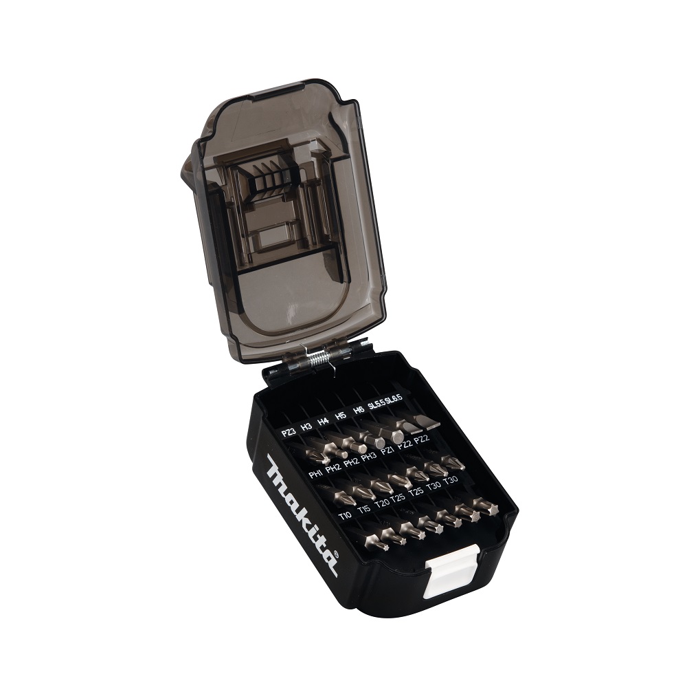 Makita akumulatora kastītē uzgaļu komplekts 21 daļa PH1,PH2,PH3, PZ1, PZ2, PZ3, T10, T15, T20, T25, T30, HEX3, HEX4,HEX5,HEX6, SL0.8×5.5, SL1.2×6.5