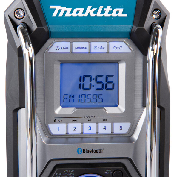 Izturīgs radio ar IP65 aizsardzības klasi lietošanai gan darba vietā, gan brīvā laikā. Laba skaņa ar diviem 89 mm skaļruņiem. Var izmantot ar 12V, 18V un 40V akumulatoriem vai tīkla barošanu. Darba laiks līdz 27 stundām ar 18 V LXT® 6,0 Ah akumulatoru. Ierīcei ir arī AUX pieslēgvieta un USB ports telefona uzlādei. Radio ir digitālais AM/FM uztvērējs ar 10 atmiņas vietām, 5 AM un 5 FM frekvencēm, kā arī ir fona apgaismojuma LCD ekrāns, vadības rats un izvēlnes pogas. Papildus ierīcei ir pulkstenis ar gan miega taimeri, gan modinātāja funkciju. Radio ir lieliski aizsargāts apkārt ar gumijas aizsargstieņiem un priekšā esošiem metāla stieņiem. Ar ērtu rokturi ierīci viegli pārvietot no viena vietas uz citu. Radio antena ir integrēta rokturī.
