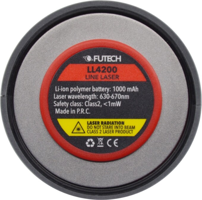 Mazs un vienkāršs līnijas lāzers. Sarkani stari. 1 horizontāla līnija / 1 vertikāla līnija. Pendelējoša līmeņošana (pašlīmeņojošs). Mērījumu precizitāte 3mm/10m.