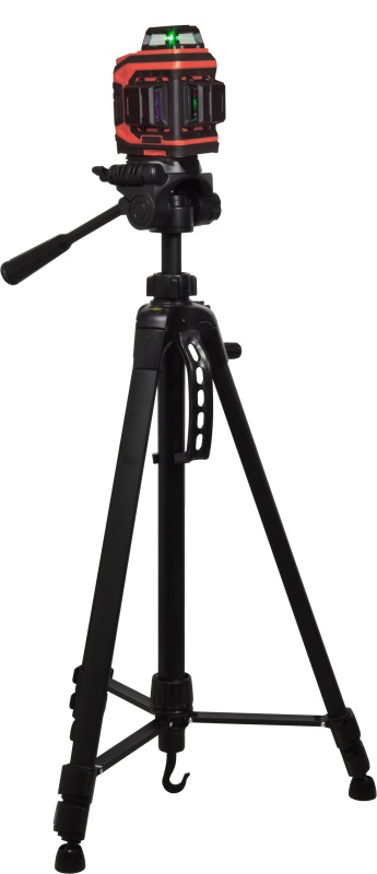 Lāzers, statīvs (160cm), Li-Ion uzlādējams akumulators, barošanas adapteris/lādētājs, marķēšanas plāksne, brilles, magnētiska sienas stiprinājuma kronšteins, soma