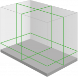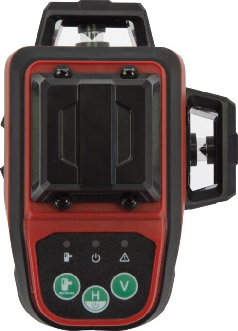 1 x horizontāla līnija 360° / 2 x vertikāla līnija 360° (= līmenis augšā un apakšā + četri 90° leņķi). Mērījumu precizitāte 2mm/10m. Līmeņošana ar pendelmehānismu.