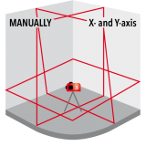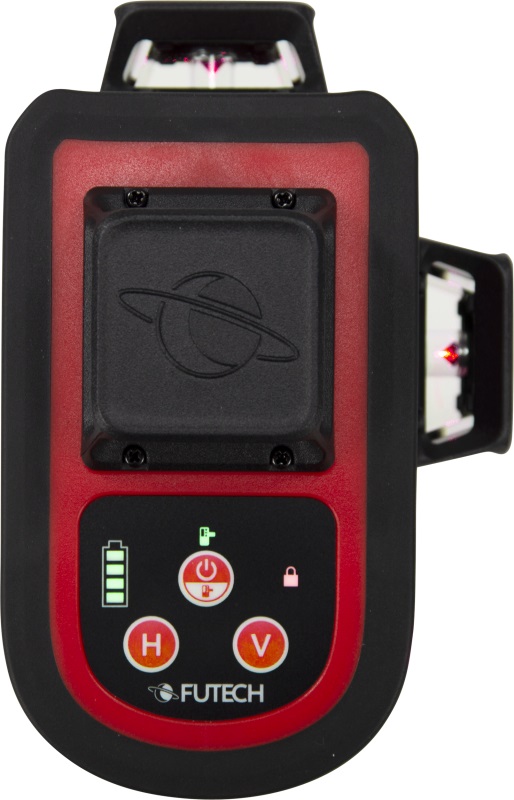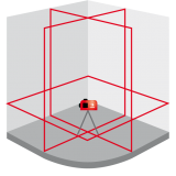 1 x horizontāla līnija 360° / 2 x vertikālas līnijas 360° (= vertikāla līnija augšā un apakšā ar četrām 90° leņķa līnijām). Mērījumu precizitāte 2 mm/10 m.