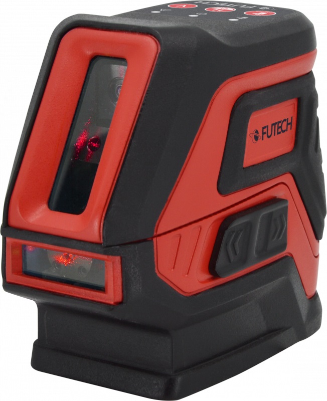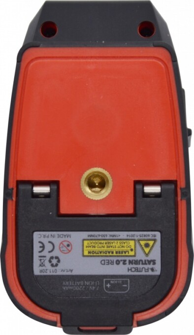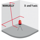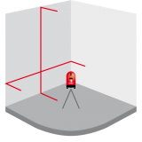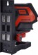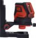 Sarkani stari. 1 horizontāla līnija / 1 vertikāla līnija. Pendelējoša līmeņošana (pašlīmeņojošs). Mērījumu precizitāte 2 mm/10 m.