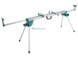 Transportēšanas laikā zāģi var atstāt aizvērtu. Lieli izturīgi riteņi. Garas regulējamas materiālu atbalsta kājas. Regulējama kāja nelīdzenām virsmām.