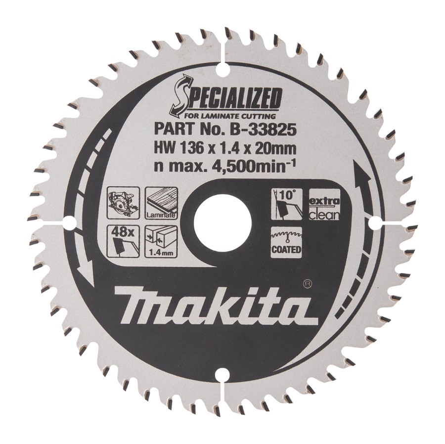 Zāģa disks ar T.C.T zobiem MDF/lamināta-I griešanai 136X1.4X20mm 10° T48. Volframa karbīda zobu zāģa disks SPECIALIZED. Diska asmens diametrs ir 136 mm un cauruma izmērs 20 mm. Zobu skaits 48 un zāģēšanas solis 1,4 mm. Piemērots lamināta un koka griešanai.