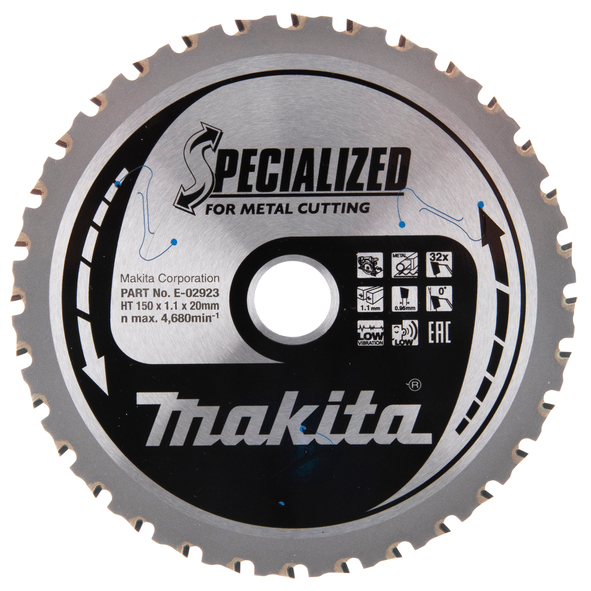T.C.T zobainais zāģa disks metāla griešanai 150X1.1X20mm 0° T32 SPECIALIZED. Garāks akumulatora darba laiks un darba ilgums. Smalks grieziens.