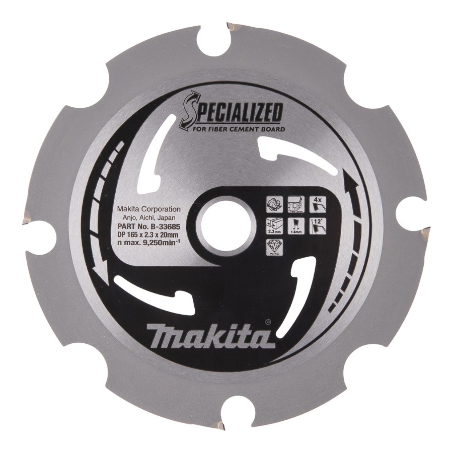 Zāģa disks ar T.C.T zobiem cementa plākšņu griešanai 165X2.3X20mm 12° T4. Zāģa disks SPECIALIZED ar volframa karbīda zobiem. Diska asmens diametrs ir 165 mm un cauruma izmērs 20 mm. Zobu skaits 4 un zāģēšanas solis 2,3 mm. Piemērots šķiedrcementa plāksnes griešanai.