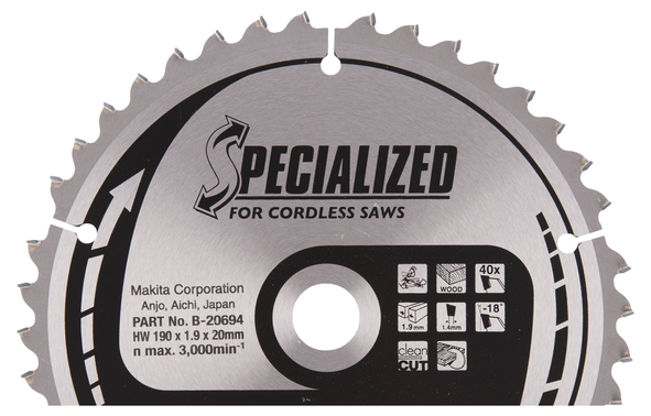 Zāģa disks 190X20X1,9MM -18° 40T Makita B-20694