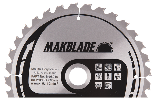 Zāģripa 250x30x2,4mm 5° 32T Makita B-08919