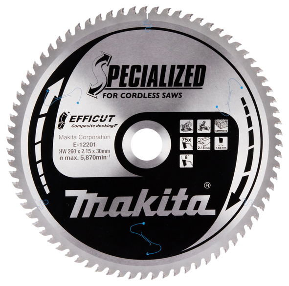 TCT zāģa disks kompozītmateriāliem, 260X2.15X30mm 15° T75 EFFICUT