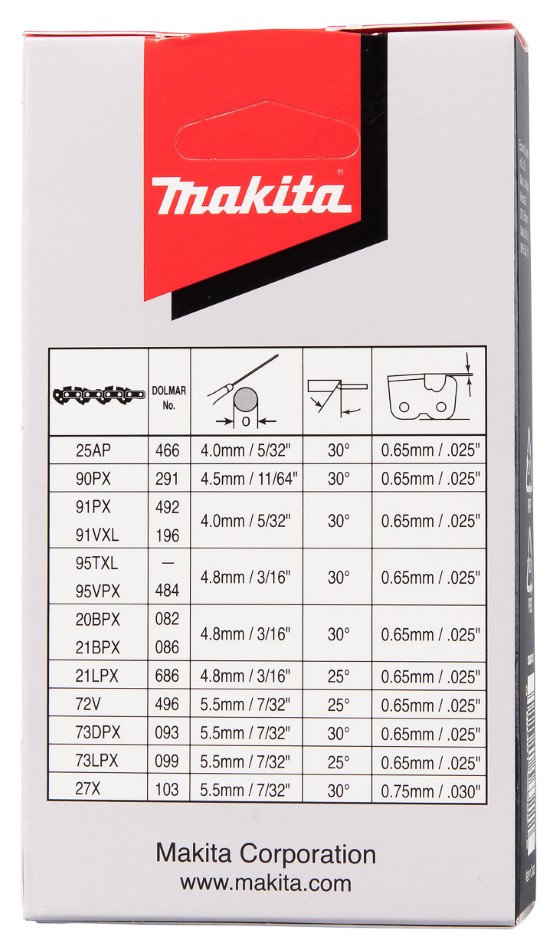 Produkti Dārza tehnika Dārza tehnikas piederumi Zāģa ķēdes Zāģa ķēde FC 21LPX 45cm/18″, 0,325″, 1,5mm, 72H Makita 191H36-9