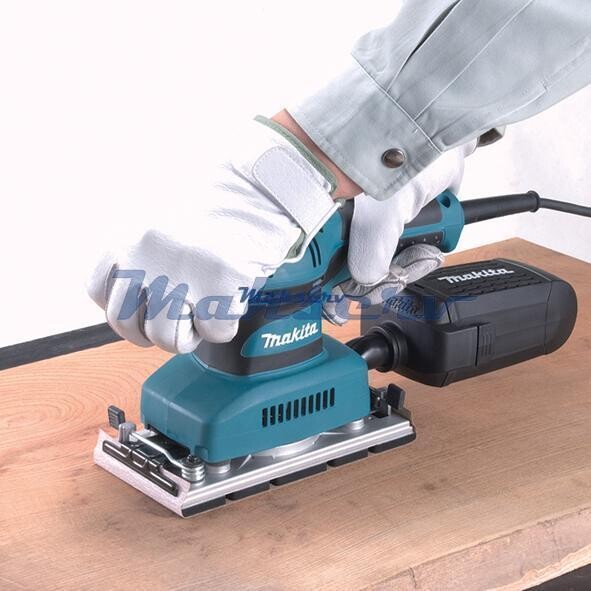 Rokturim gumijots pārklājums nodrošina drošu satvērienu. Izturīga alumīnija liešanas pamatne ar putekļu sūcēja savienojumu. Ļoti klusa. Lielas virsmas stiprināšanas atsperes nodrošina slīpēšanas papīra vienkāršu un noturīgu stiprinājumu. Putekļu savākšana papīra maisiņā (plastmasas pārklājuma iekšpusē). Pateicoties dzesēšanas sistēmai, motors nodrošina vairāk jaudas.