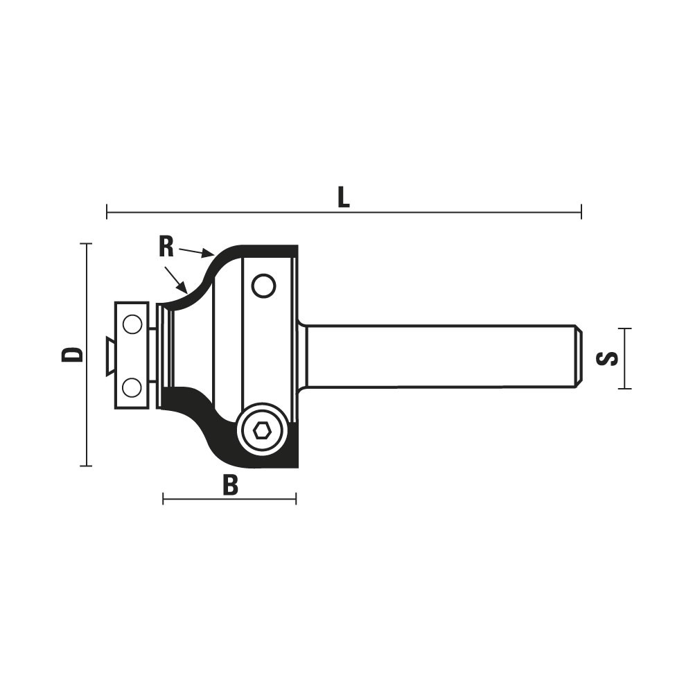 Produkti Piederumi Frēžu piederumi Frēžu asmeņi Frēze ar gultni, S=8mm, R=4,5, 26×15,7x55mm, ar maināmu asmeni Klein WC129.260.R
