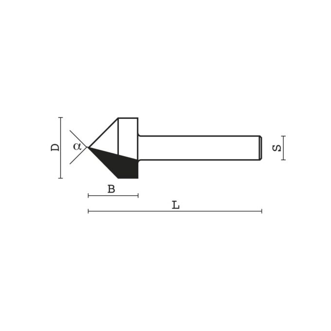 S=8, D-2=25.4, B=19, L=48, Z (Nr. denti)=2, α (Angolo di taglio)=90°