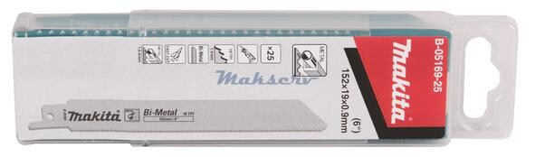 Produkti› Piederumi› Zobenzāģu asmeņi› Universālais zāģa asmens 152×0,9mm BiM LOCĪJAMS (18tpi) Makita B-05169-25 METĀLS 25gab