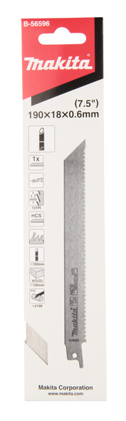Produkti Piederumi Zobenzāģu asmeņi Universāls zāģa asmens 190×0,6mm HCS (15TPI) Makita B-56596 NEAPSTRĀDĀTAM KOKAM 1gab